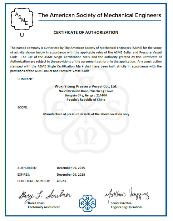 實力再獲國際認(rèn)可!無錫益騰壓力容器有限公司成功續期ASME認證
